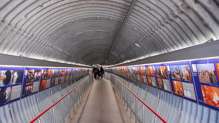 주차 후 주차장 입구의 계단이나 엘리베이터를 이용하여 지하통로로 내려가시기 바랍니다.