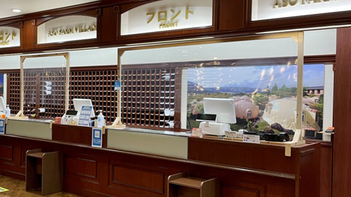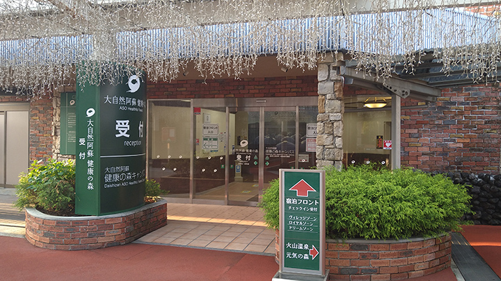접수데스크가 있어요대자연 아소 건강의 숲, 그러니까 안으로 들어오세요.