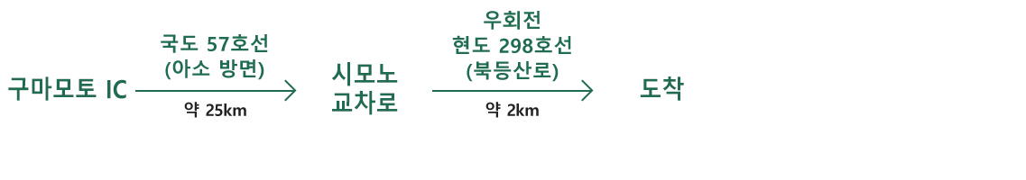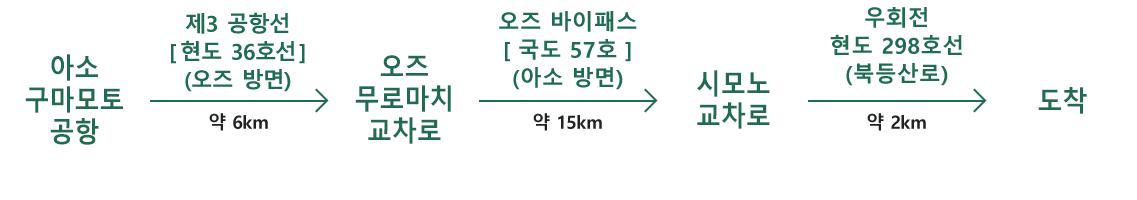 아소 구마모토 공항에서 다이산 공항선(현도 36호)을 타고 오쓰 방면으로 이동
