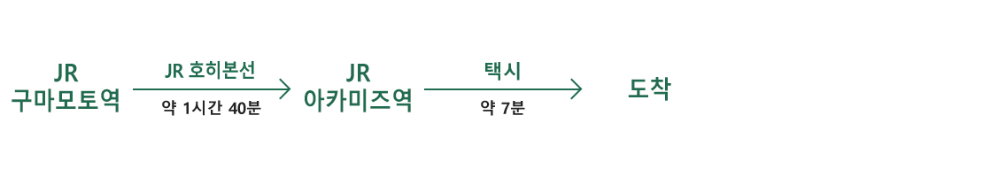 "JR 구마모토역"에서 JR 호히 본선 "아카미즈역" 하차(승차 시간 약 1시간 40분)