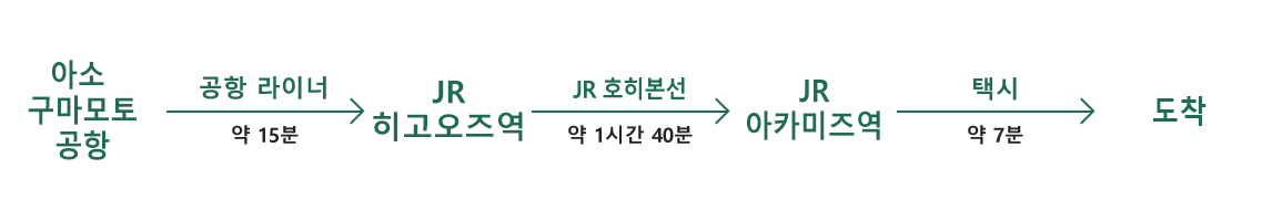 아소 구마모토 공항에서 무료 셔틀 공항 정기선을 타고 히고오쓰역까지 가세요.(승차시간 : 약 15분)