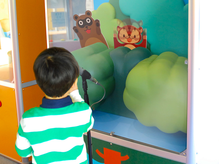 버튼을 누르면 나무 뒤에서 동물이 나타납니다!