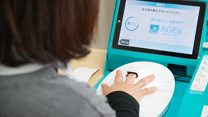 생활습관을 확인하는 새로운 지표!부적절한 식습관, 생활습관, 운동부족 등으로 체내에 증가, 축적된 AGE(최종당화산물)의 양을 평가합니다.