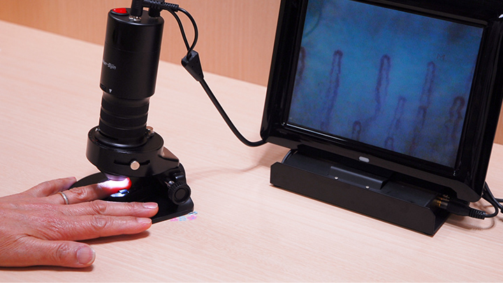 채혈을 하지 않고도 몸 전체를 흐르는 혈액을 관찰할 수 있습니다.모세혈관의 모양과 조직액 얼룩의 상태를 관찰함으로써 생활습관, 영양상태, 운동부족 등 건강상태를 판단할 수 있습니다.