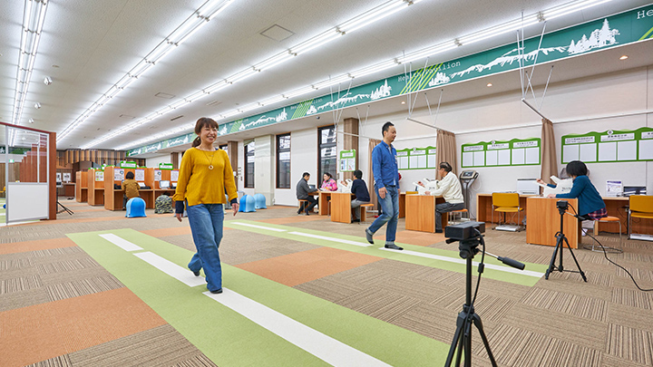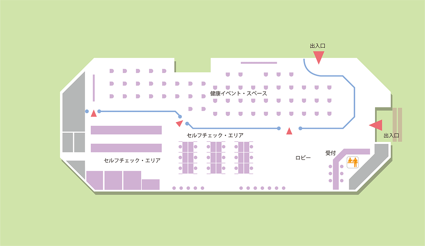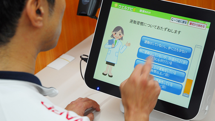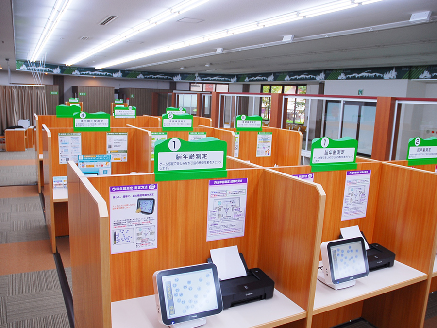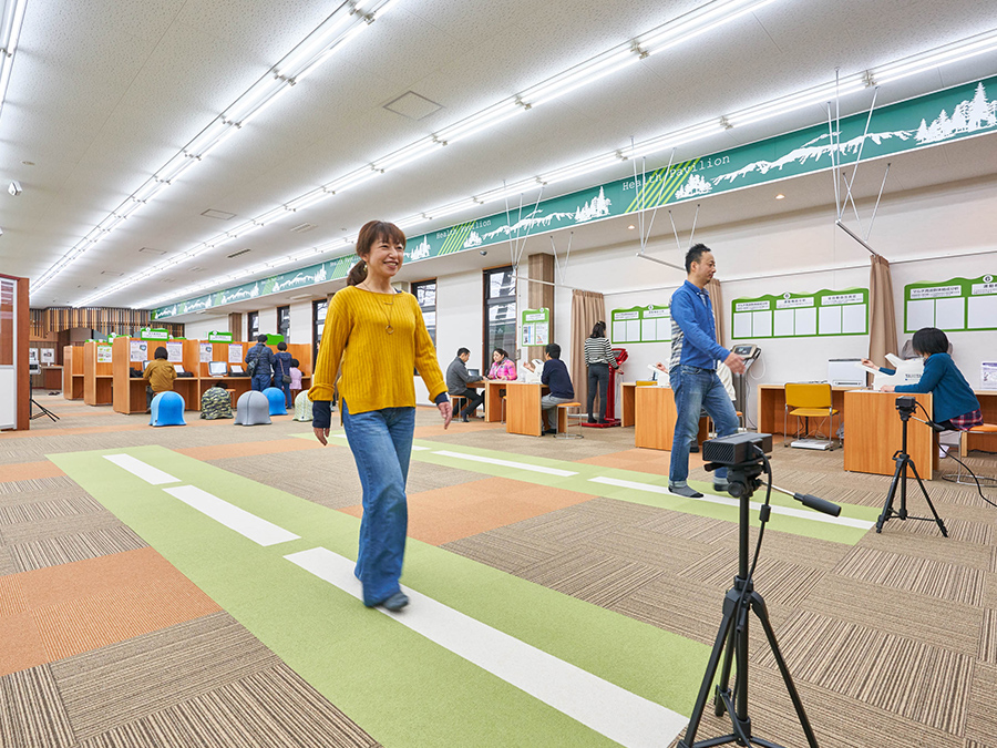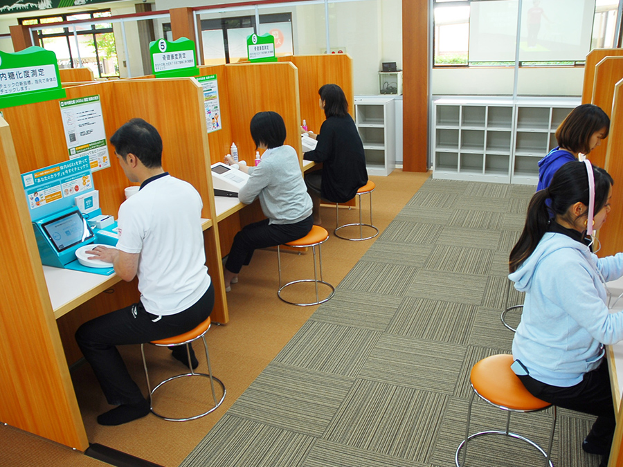 10종의 건강검진 기기와 3종의 건강지원 시스템을 이용하여 신체의 고민되는 부위를 쉽게 확인할 수 있는 건강측정 영역입니다.
