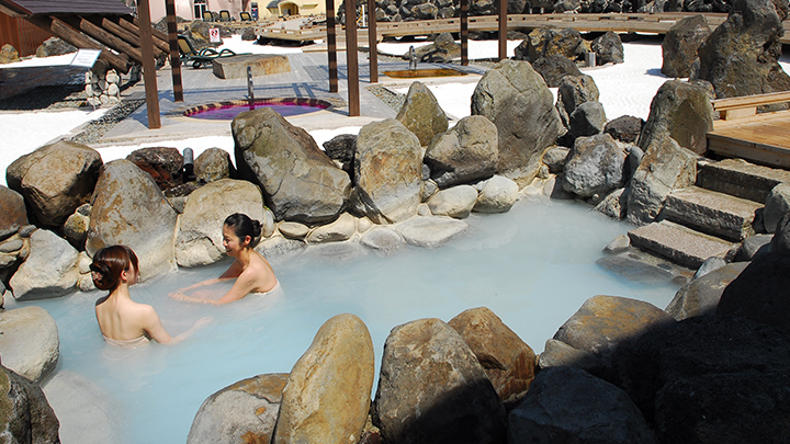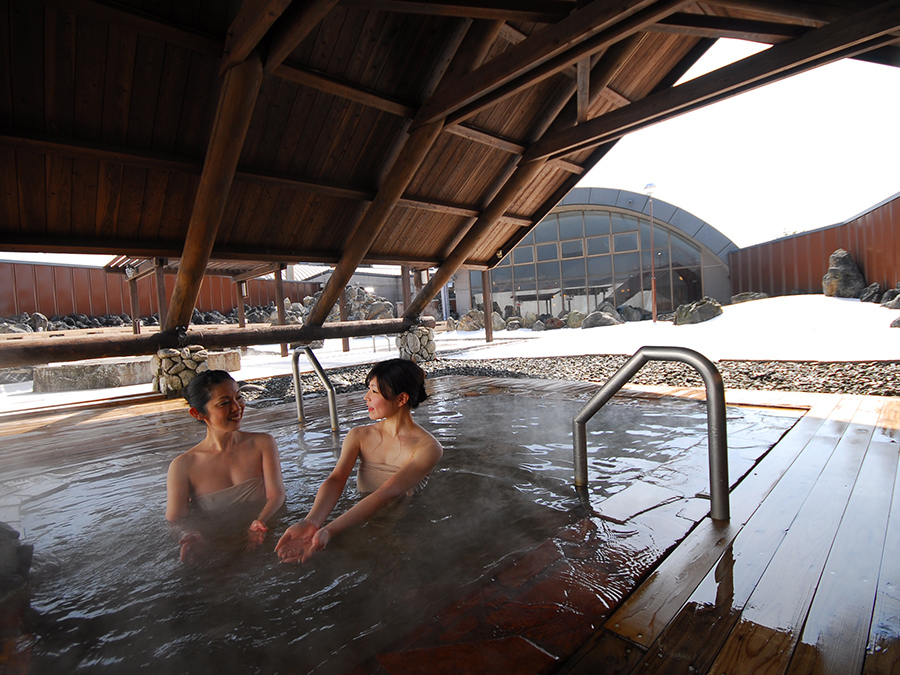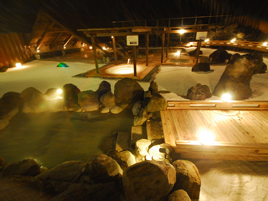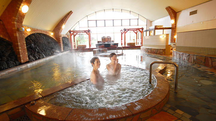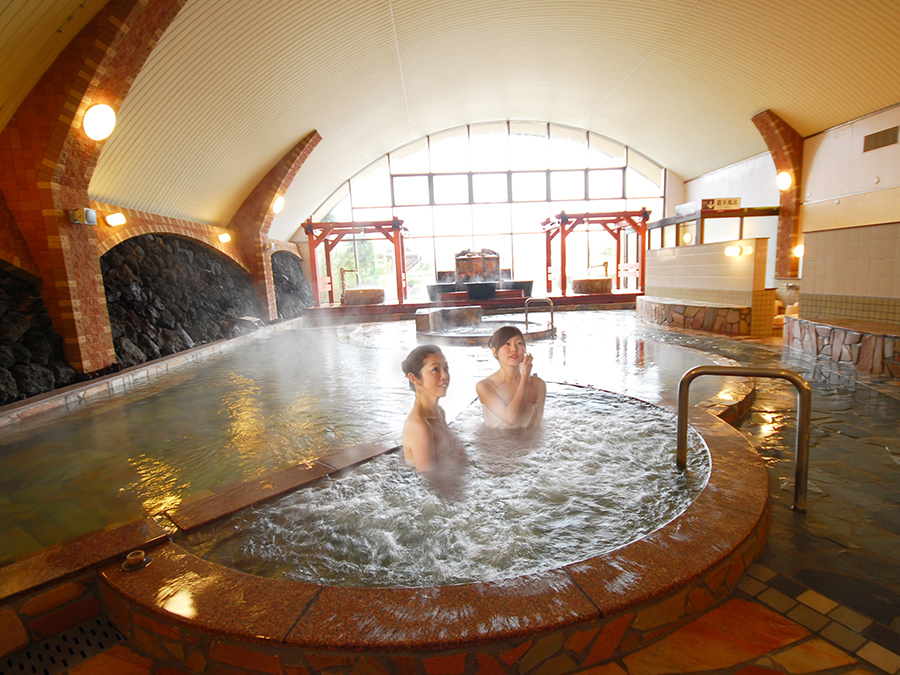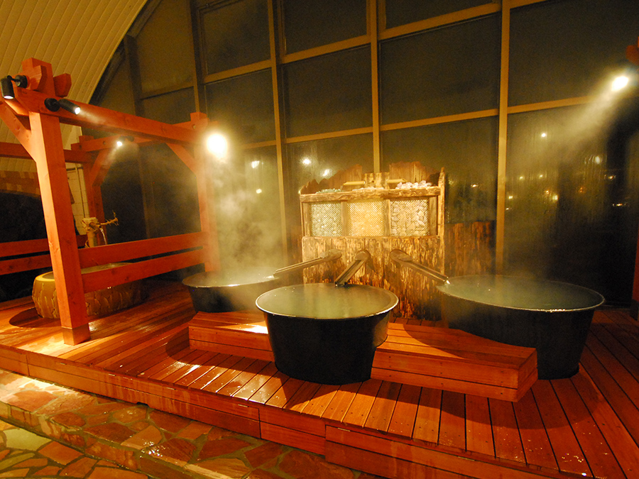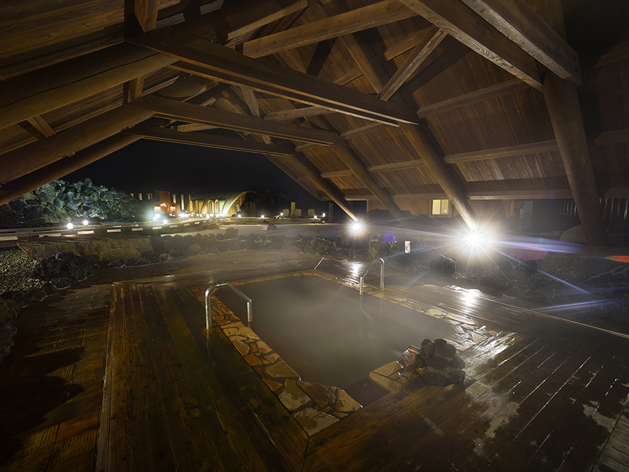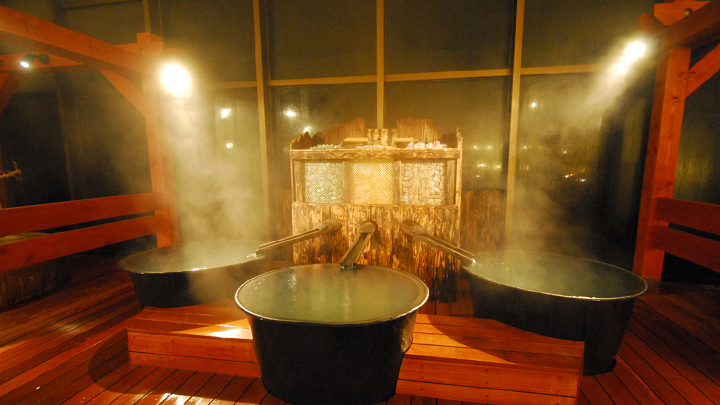 남녀공용 1,000㎡라는 큰 규모를 자랑하는 온천시설.야외 야외 공간에서는 150m 길이의 나무 산책로에서 자연을 온몸으로 느낄 수 있으며, 15가지 다양한 온천욕을 즐길 수 있습니다.