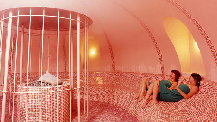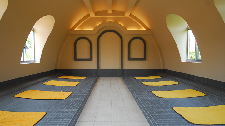 내부는 모로코 궁전을 모델로 하였으며, 약초와 암염 등 천연 소재를 가득 담아 가열한 13종의 가마를 즐길 수 있습니다.