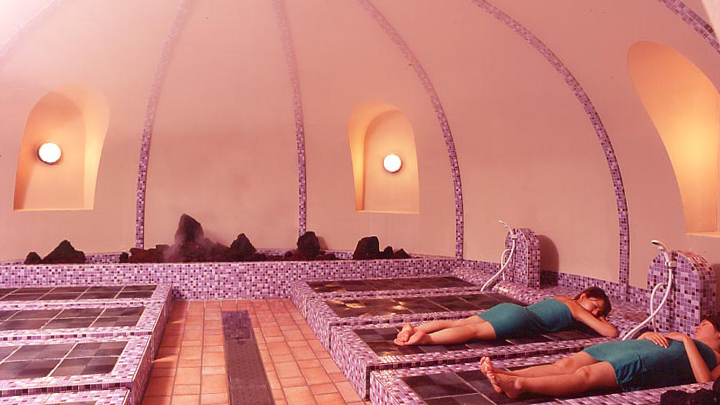 라듐의 작용으로 굳어진 뜨거운 물이 피부에 수분을 공급해줍니다.또한, 미네랄 성분이 발한을 촉진하고, 땀과 함께 혈액 속 노폐물을 배출하며, 혈액순환을 개선하고 신진대사를 활성화하며 자연치유력을 높여줍니다.