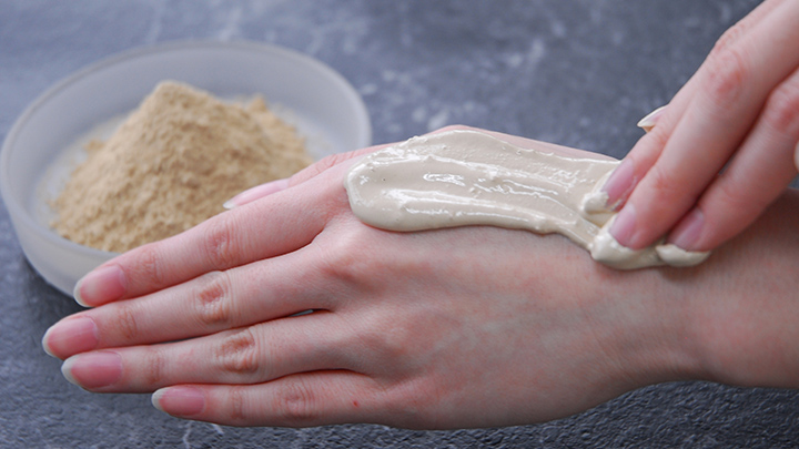 그런 다음 뜨거운 물을 넣고 점토를 물에 녹인 후 약 15분간 머드목욕을 즐겨보세요.
