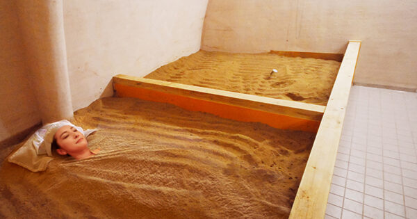 108종의 한약재를 담은 매트를 암반욕장에 깔아두면 약초의 효능과 암반에서 발생하는 원적외선에 의한 신진대사를 동시에 경험할 수 있어요!