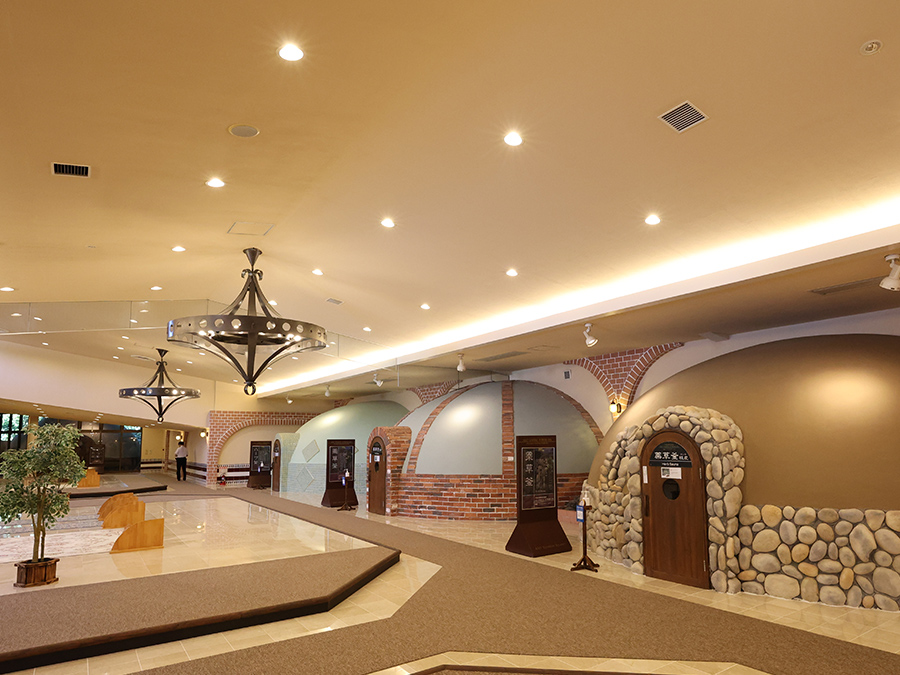 1,000평의 면적을 자랑하는 남녀별 온천시설.150m 길이의 나무 산책로와 15가지 다양한 온천 스타일을 즐길 수 있습니다.