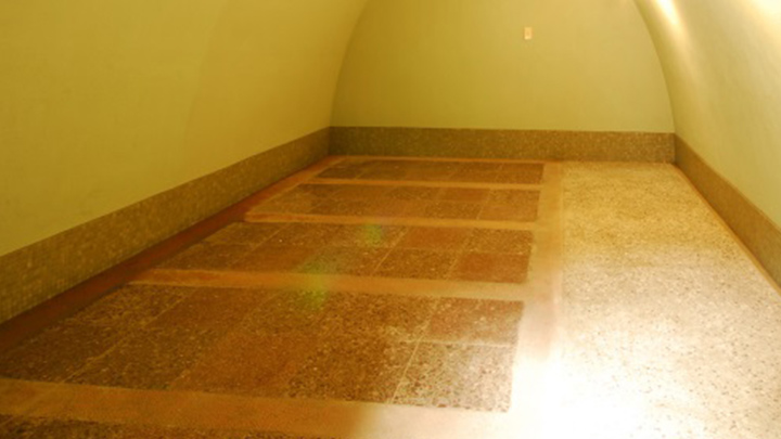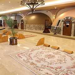 모로코 궁전을 본뜬 내부에는 약초와 암염 등 천연 소재를 담아 가열한 13종의 가마가 늘어서 있다.