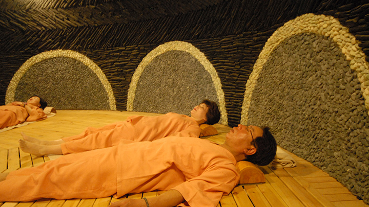 황토에서 방출되는 원적외선이 열을 발생시켜 땀을 흘리게 하여 노폐물 제거, 피로해소 등의 효과를 기대할 수 있습니다.