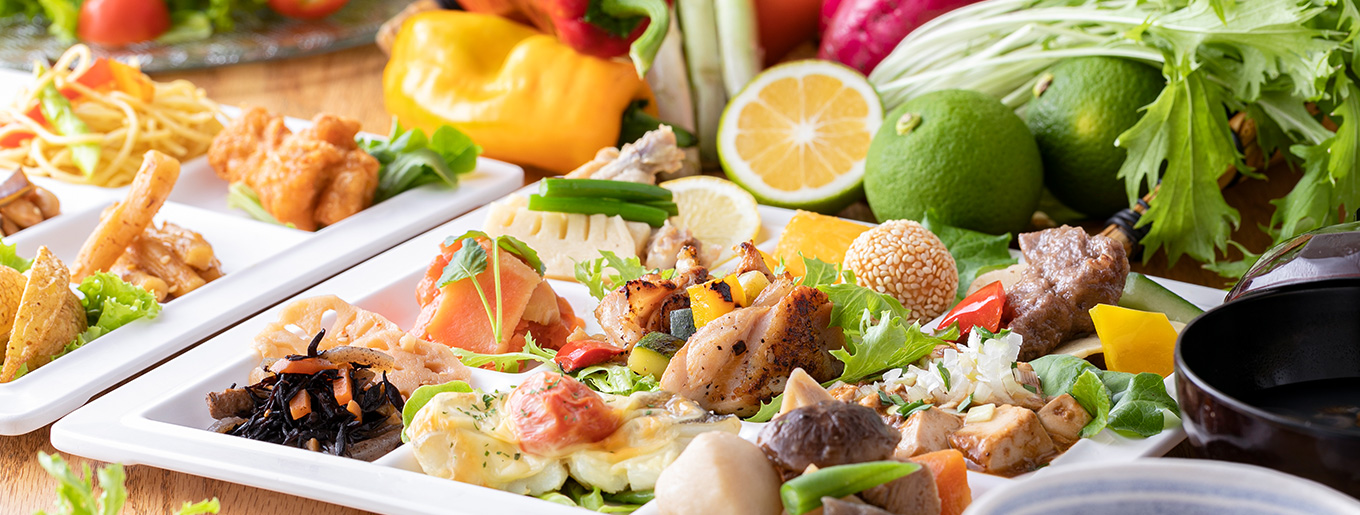 몸에 좋고 활력이 넘치는 제철 식재료를 사용한 뷔페 요리를 즐겨보세요.