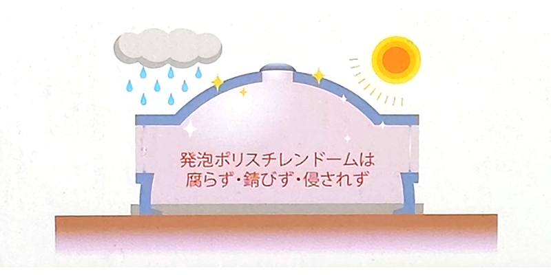 돔 형태는 구조적으로 가장 안정적인 형태이다.또한 폴리스티렌 폼은 자외선, 화학물질, 열 등에 영향을 받지 않는 한 녹슬거나 썩지 않으며, 반영구적으로 변형되지 않습니다.