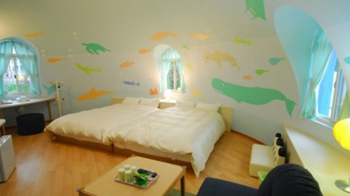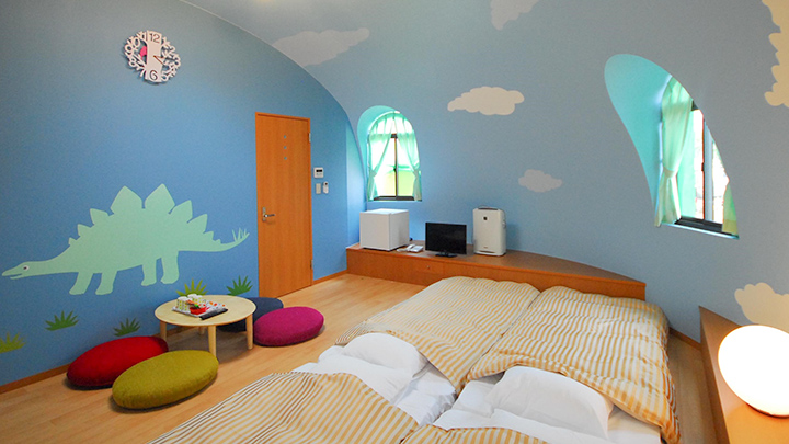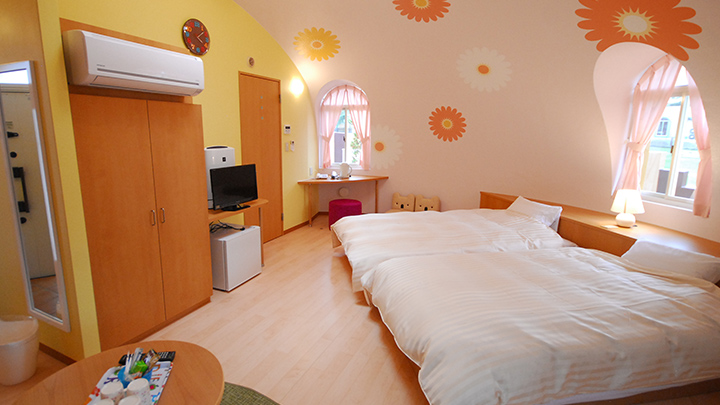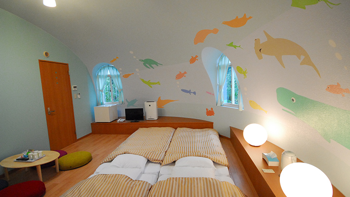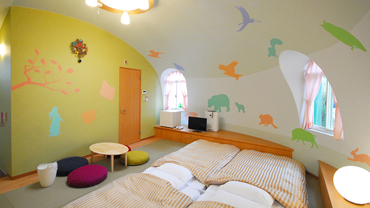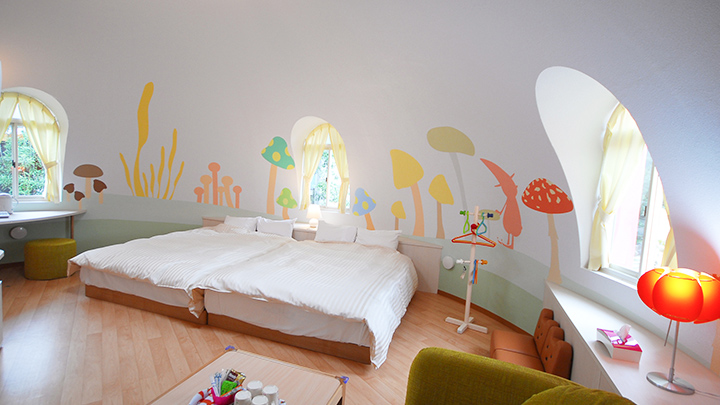 깜찍한 외관과 객실은 '버섯 숲'을 이미지화했습니다.