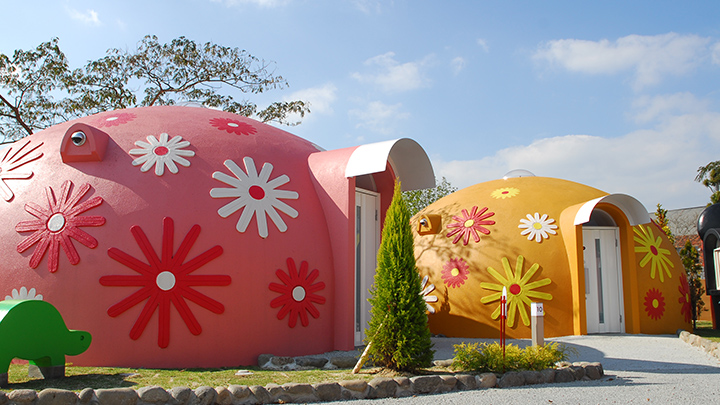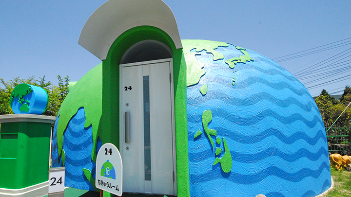 잠자리, 축구공, 나무집까지!캐릭터 디자인이 돋보이는 돔형 객실 26개.