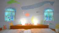 내부와 외부 모두에 많은 바다 생물이 있습니다!고래와 함께 수영하는 꿈을 꿀 수 있나요?