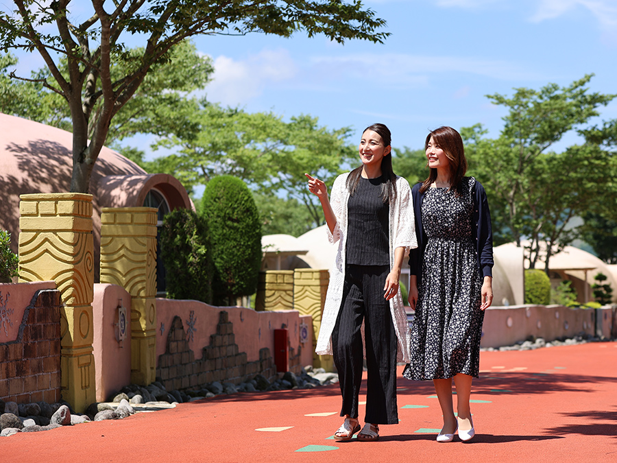 정교한 디자인의 15가지 건강온천남녀공용 1,000㎡라는 큰 규모를 자랑하는 온천시설.탁 트인 야외 공간에서는 150m 길이의 산책로를 따라 자연을 온몸으로 느낄 수 있으며, 15가지의 다양한 온천욕 스타일을 즐길 수 있습니다.