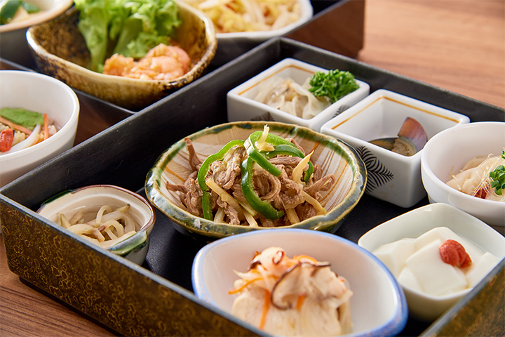 몸에 좋고 활력이 넘치는 제철 식재료를 활용한 메뉴를 즐겨보세요.인접한 아소 헬스팜에서 매일 배달되는 신선한 야채는 무농약으로 안전하게 재배됩니다.아소의 시원한 지하수에서 자란 야채를 즐겨보세요.